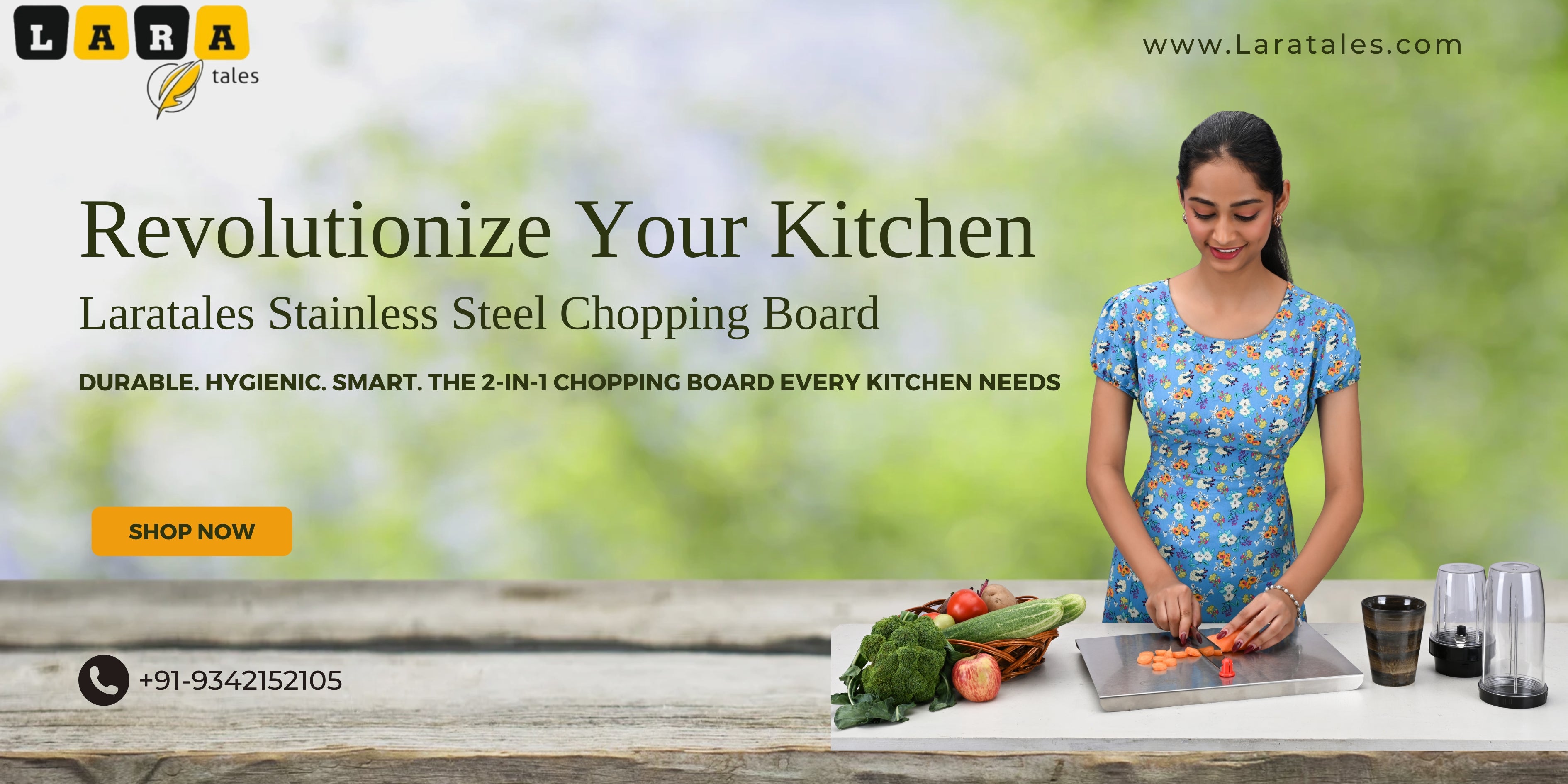 Lara Tales 2-in-1 SS Smart Cutting Board with SS Cutter – Sharp Blades for Vegetables, Fruits & Nuts | Durable Chopping Board for Fast & Safe Food Prep | Anti-Slip, Rustproof | Rectangle shape | Style