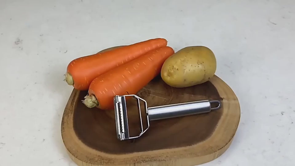 • 🥕 2-in-1 Peeler & Julienne Slicer – Slice, shred, peel and grate using one versatile kitchen tool.